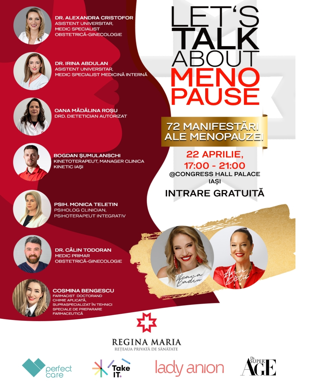 Pe 22 aprilie 2026, Congress Hall Palace Iași găzduiește „Let’s Talk About Menopause – 72 de manifestări ale menopauzei”, un eveniment educațional gratuit despre menopauză organizat de SuperAge, în parteneriat cu Regina Maria.